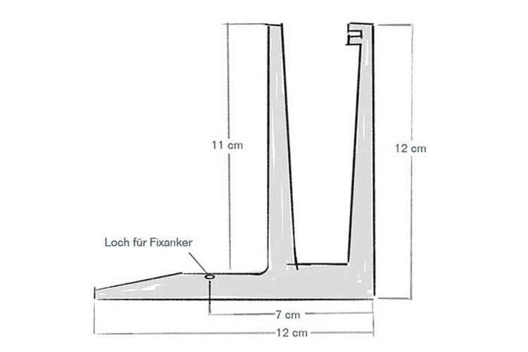 Aushub herstellen für das Fundament. Verdichten der Koffersohle und auf ausreichende Drainage achten. Sauberkeitsschicht einbauen, ausreichend verdichten. Schalung herstellen, so dass oben eine planebene Oberfläche des Fundaments entstehen kann. Beton einfüllen, verdichten und planeben abziehen, so dass die Elemente später lotrecht stehen. Beton ausreichend aushärten lassen. Bitte beachten Sie, dass Wasser nicht direkt an den Elementen stehen bleiben kann und immer abläuft. Es muss immer umlaufend eine Fuge verbleiben, so dass etwaiges Wasser ablaufen kann.