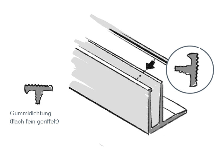 5. Gummidichtung (flach fein geriffelt) an der vorgefertigten Nut des Alublocks planeben einsetzen.