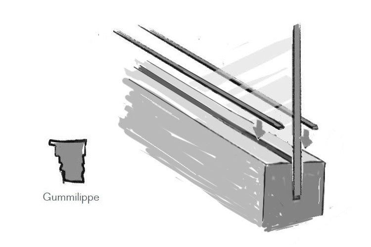 3. Einsetzen der beiden Gummilippen (eine auf jeder Seite des Glases), diese fest eindrücken.